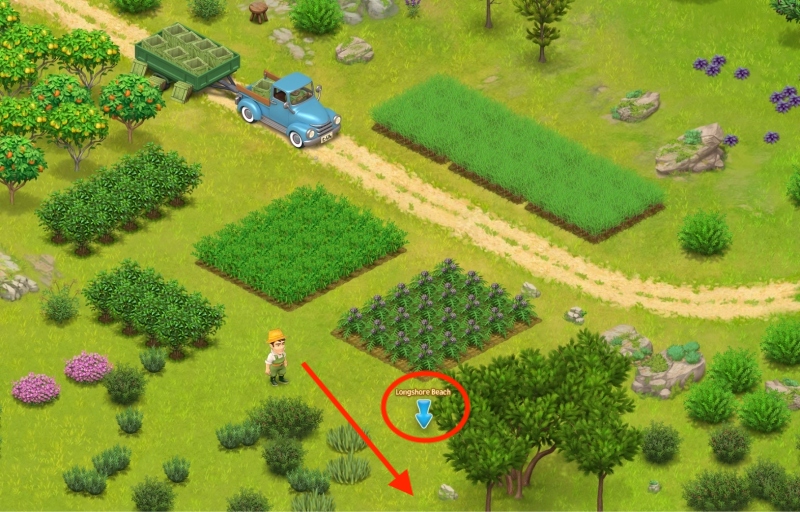 You can also open the World Map again, then click the Joe icon that is on your Farm so he travels there. Your farm’s location is circled below.