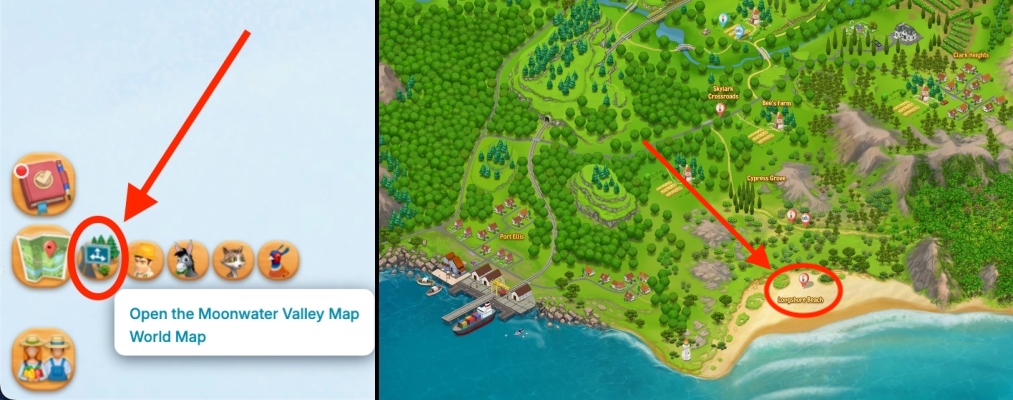 You can go to Longshore Beach from the World Map. Hover over your Map icon > open the World Map > click on Joe’s icon next to Longshore Beach and Joe will travel there.